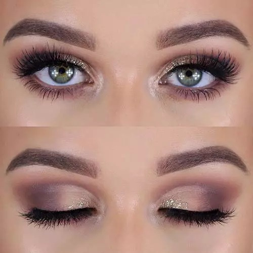 10- سایه خاکستری مایل به قهوه‌ای + مژه مصنوعی + سایه اکلیلی