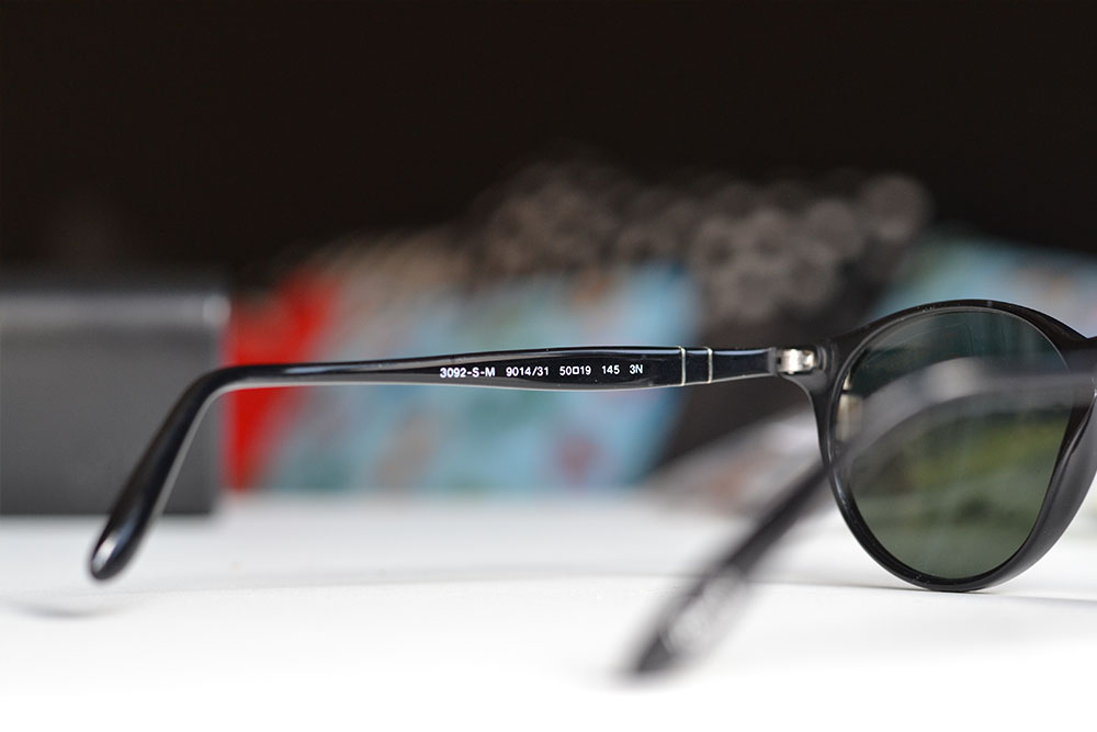 روی دستهی سمت چپ عینک آفتابی اصل پرسول نام مدل به همراه 3 یا 4 عدد که هم نوشته شده باشد که در انتهایشان هم کلمه یا حرفی درج شده است.