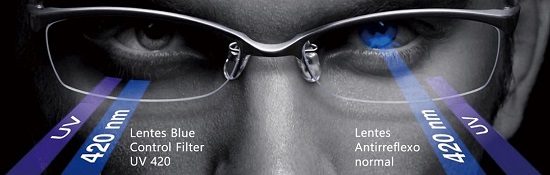 میشود. در ساختار عدسی بلوکات، مواد بازدارنده در داخل بافت عدسی وجود دارد. قابلیت uv در این عدسی 420 است. - عدسی بلوکنترل: عدسیهای بلوکنترل هوشمند عمل کرده و فقط قسمتی از نور آبی بنفش که بسیار خطرناک بوده و به فرابنفش معروف است را، حذف میکند. این نوع عدسی به نورهای مفید اجازه میدهد تا عبورکرده و به چشم برسند. عدسیهای بلوکنترل دارای فیلتر نور آبی است و پوشش شفافی به روی سطح عدسی دارد. این پوشش مانع بازتاب نور به درون چشم میشود. این عدسی مانع عبور نورآبی با طول موج 380 تا 450 نانومتر به داخل چشم میشود. بلوکنترل به نورهایی که دارای طول موج 450 تا 500 نانومتر هستند، اجازه عبورمی دهد.