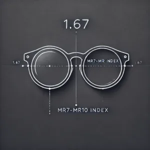 عدسیهای با ضریب شکست 1.67 از دو نوع متریال MR7 و MR10 ساخته میشوند. این عدسیها مقاومت حرارتی حدود 85 تا 100 درجه سانتیگراد دارند و نسبت به ضربه مقاومت متوسطی دارند. قابلیت رنگپذیری این عدسیها خوب است و تا 400 نانومتر اشعه UV را مسدود میکنند.
