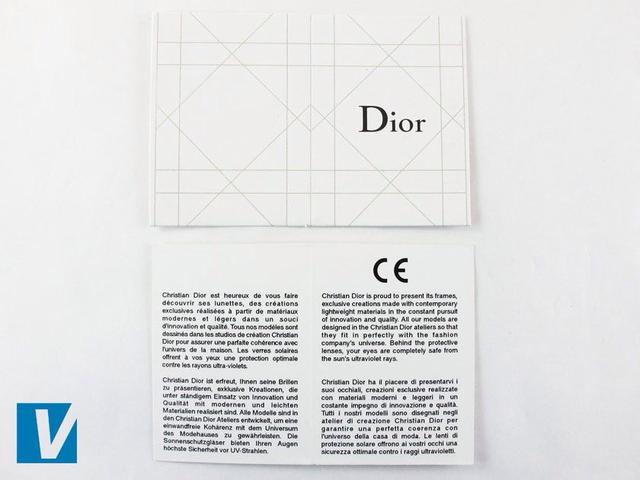 عینک آفتابی برند دیور با کارت ضمانت همراه است. تمام نوشته‌ها و املای Dior را روی این کارت مورد بررسی قرار دهید تا مطمئن شوید که جعل نشده و تقلبی نیست.
